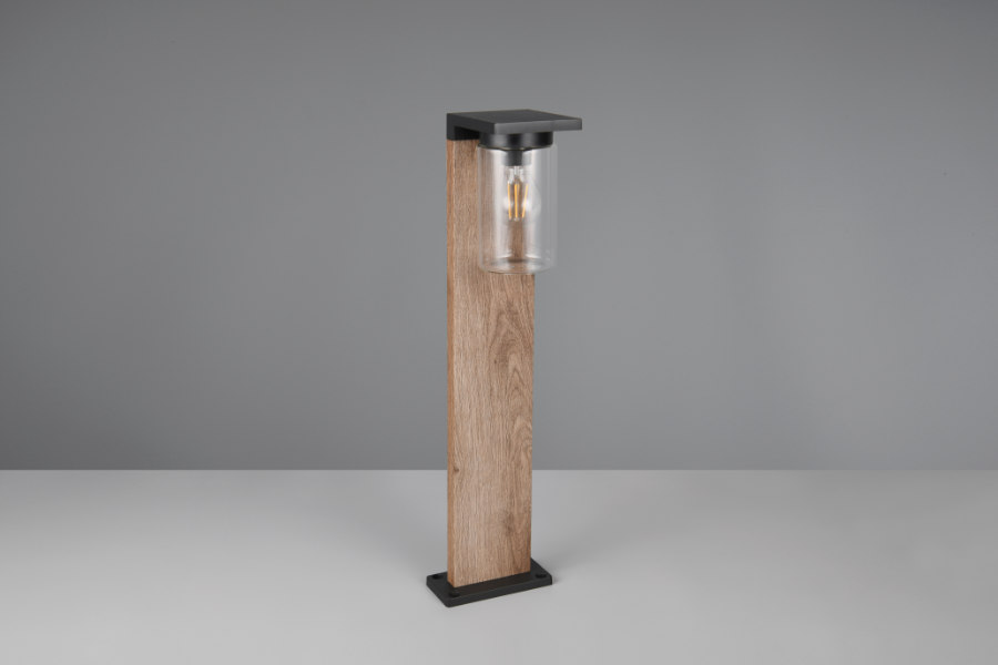 Elegantna kombinacija stakla i livenog aluminijuma u efektu drveta čini ovu svetiljku visokokvalitetnim dekorativnim detaljem koji se savršeno uklapa u svaku modernu terasu, dvorište ili prilaz.